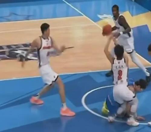 那是比赛第二节的一个回合,当时萨姆纳跟周琦出现了一次对抗,周琦失了重心,摔倒碰到徐杰。