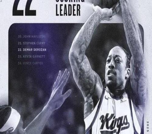 北京时间今日,在NBA常规赛中,萨克拉门托国王队在主场迎战纽约尼克斯队。在比赛进行到第三节时,德罗赞三分命中得到本场的第22分,他也就此完成了在历史总得分榜上对于第22名凯文-